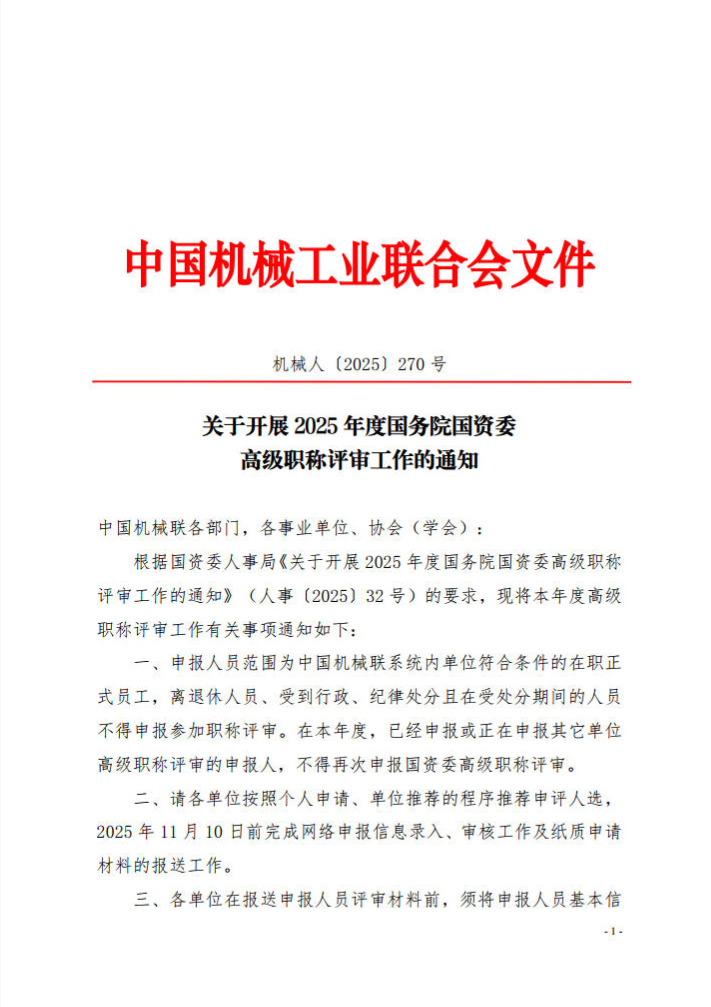 关于开展2025年度国务院国资委高级职称评审工作的通知