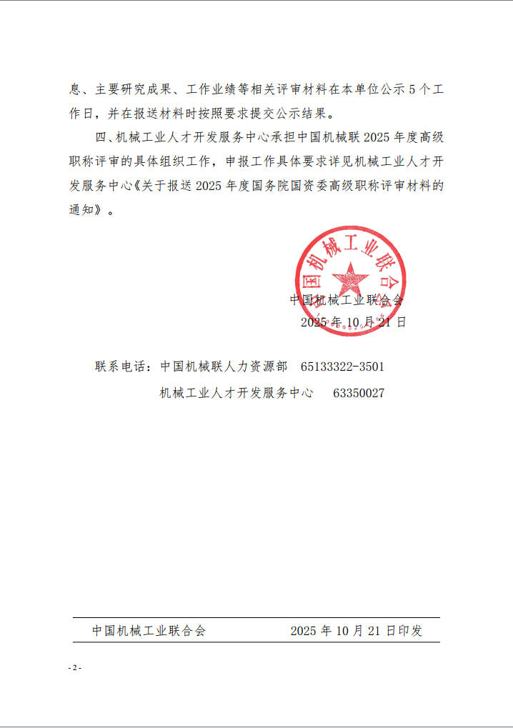 关于报送2025年度国务院国资委高级职称评审材料的通知