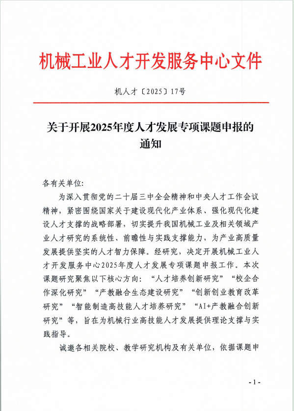 关于开展2025年度人才发展专项课题申报的通知
